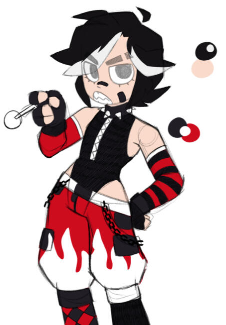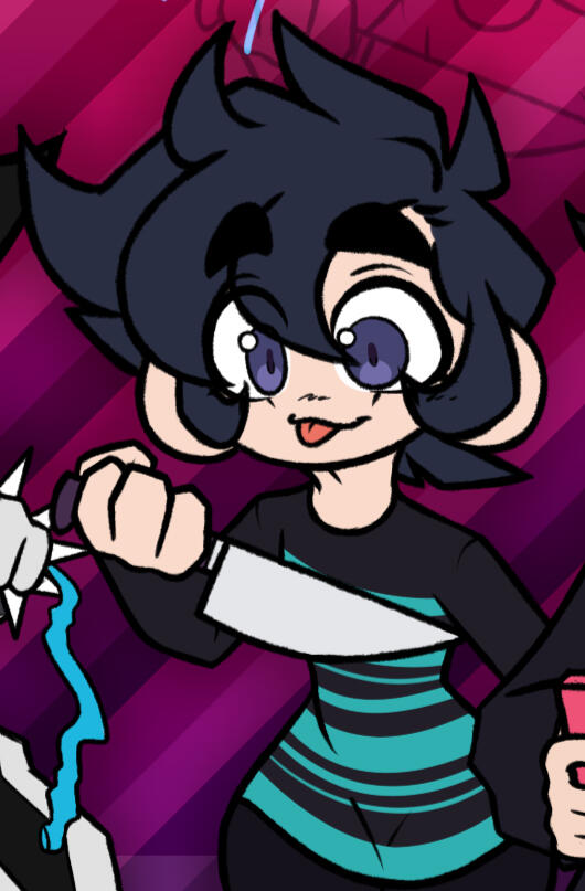 He's more "stupid" yet energetic, he changes teeth depending on how hyped he is, usually seen playing with a knifeHe recently got a redesign where his hair goes downwards instead of upwardsSometimes he is used for VENT ART, there are some examples below